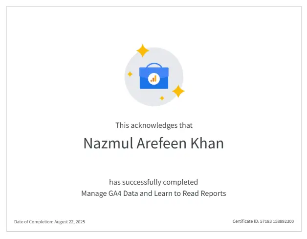 Nazmul Arefeen is a professional web analyst & paid media buyer who has been working in this industry for over 4+ years with a bunch of talented minds and helps 400+ business owners on local and international marketplaces.